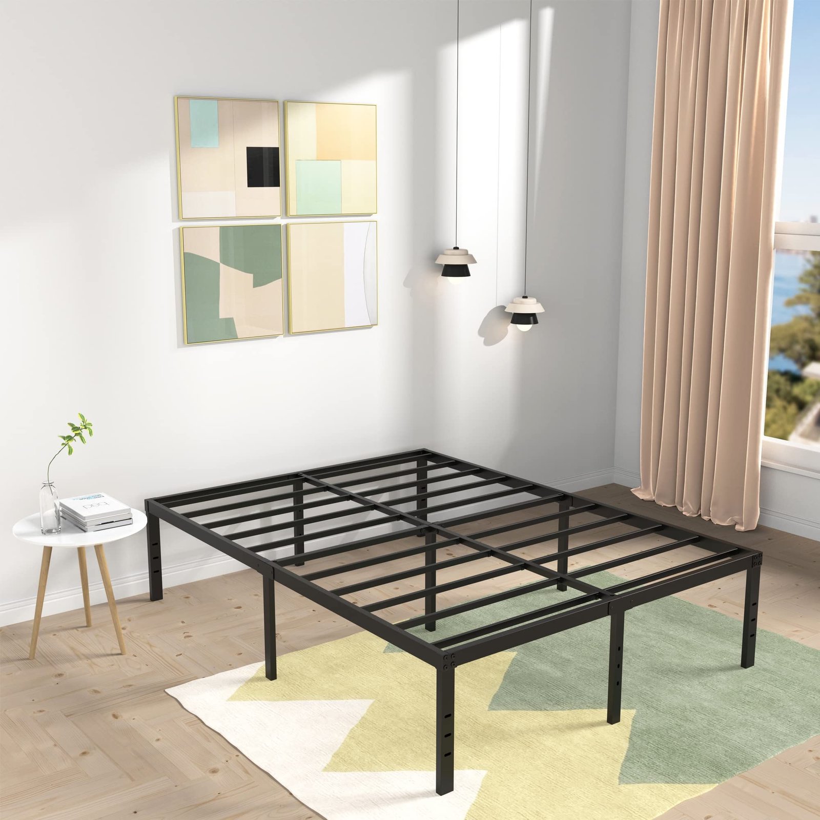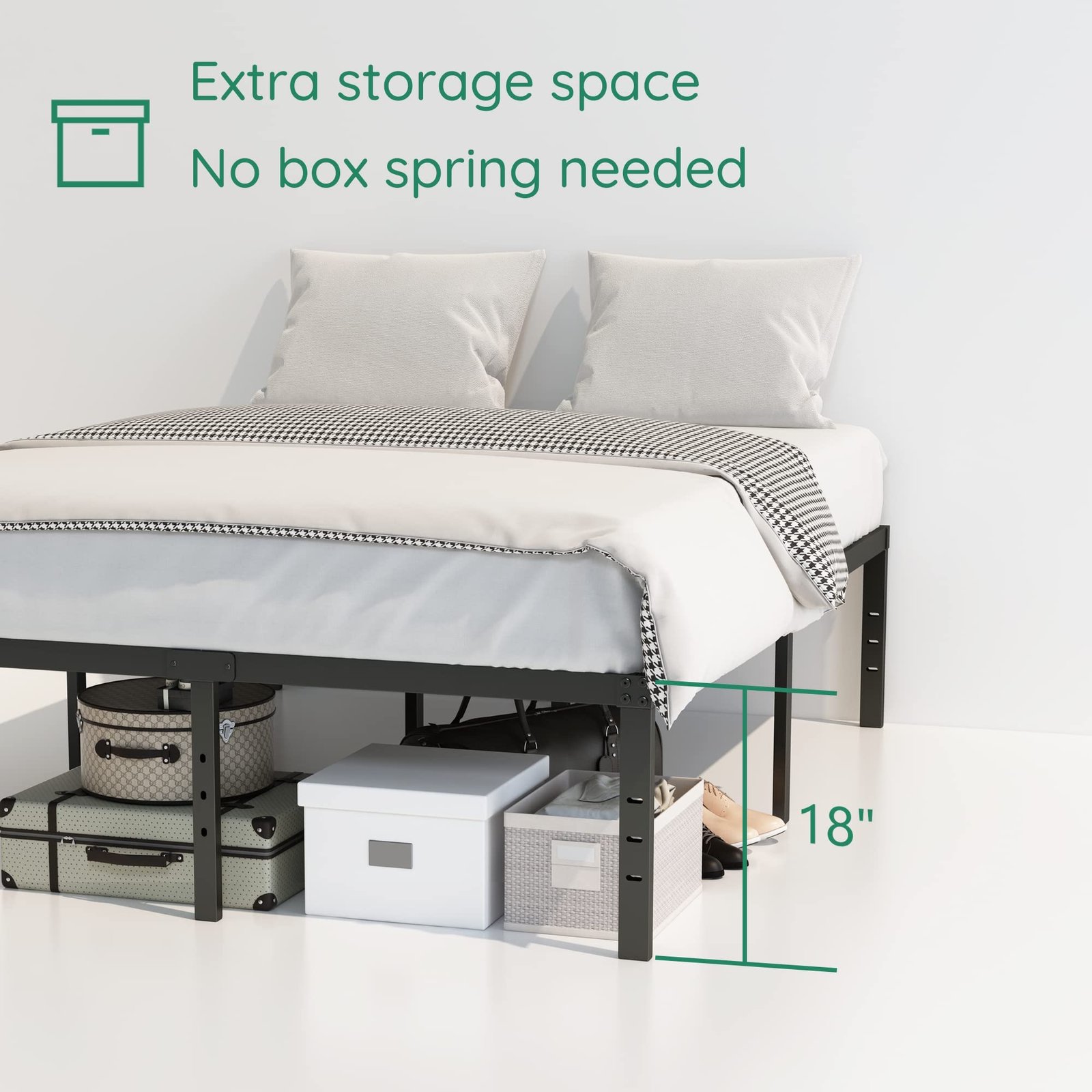 DIY Stored Style: This metal bed frame full provides ample storage space. 16.5 inches high under bed storage lets you use your space in a clever way to keep sorting all items neatly. With these home solutions, you can have a calm and harmonious bedroom.