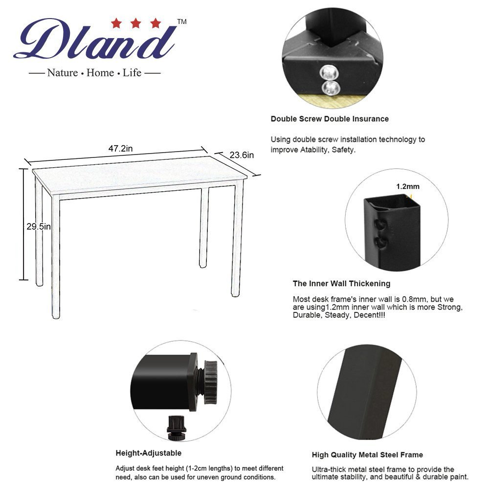 ?Health & High Quality?: The Plate: Solid wood particle pressing, E1 grade environmental wood without any industrial glue, and 0 formaldehyde release. Table legs are using epoxy spray paint process, and using 1.2mm inner wall (most desk frame’s inner wall is 0.8mm).