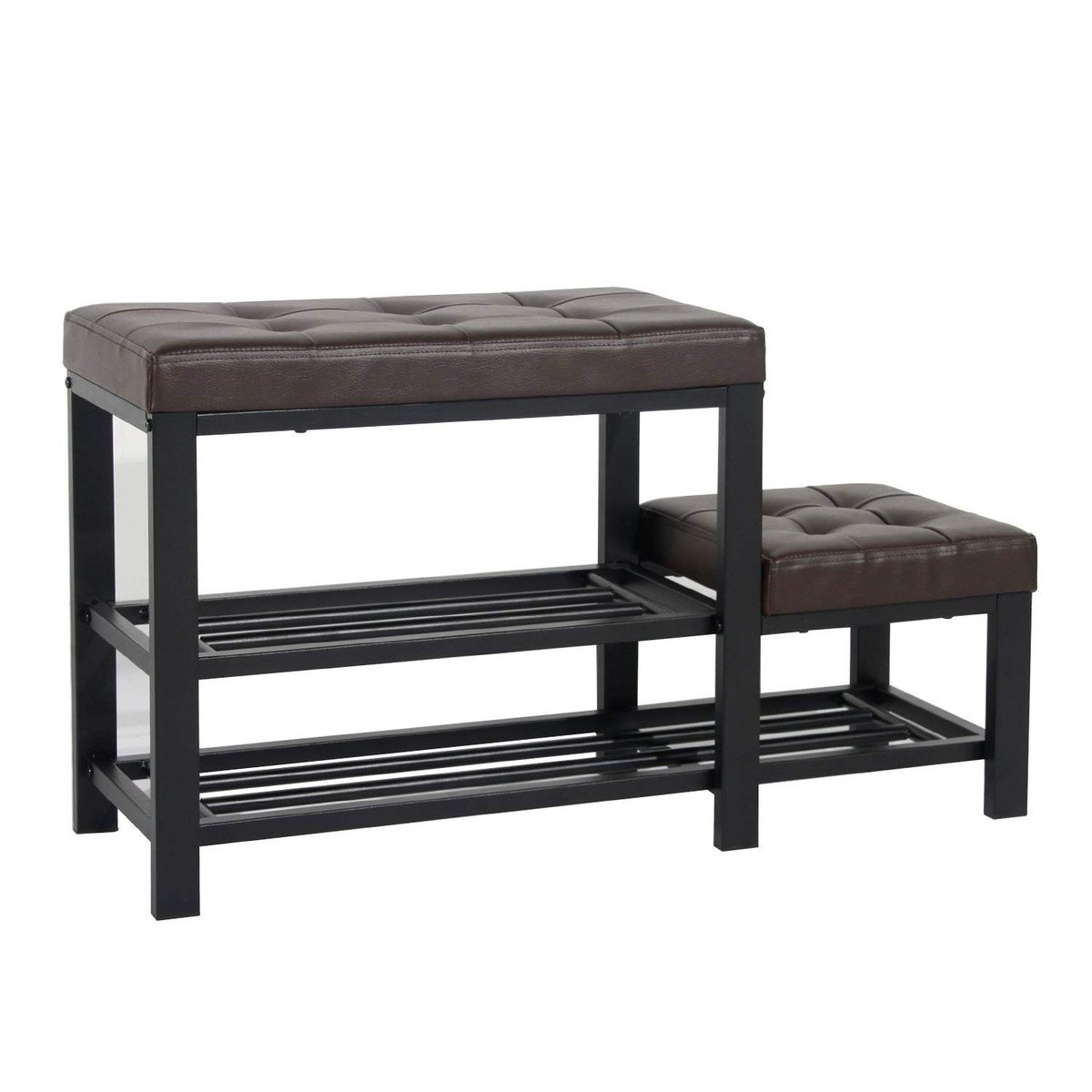 ?Quality Material: Shoes Bench, constructed of quality PU leather padded seat and sturdy metal frame. The black iron frame make the shoe bench more fashionable.