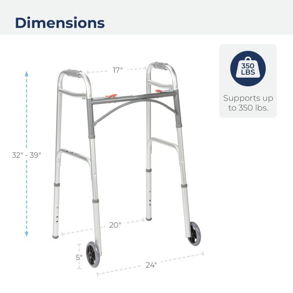 Drive Medical 10210-1 2-Button Folding Walker with Wheels