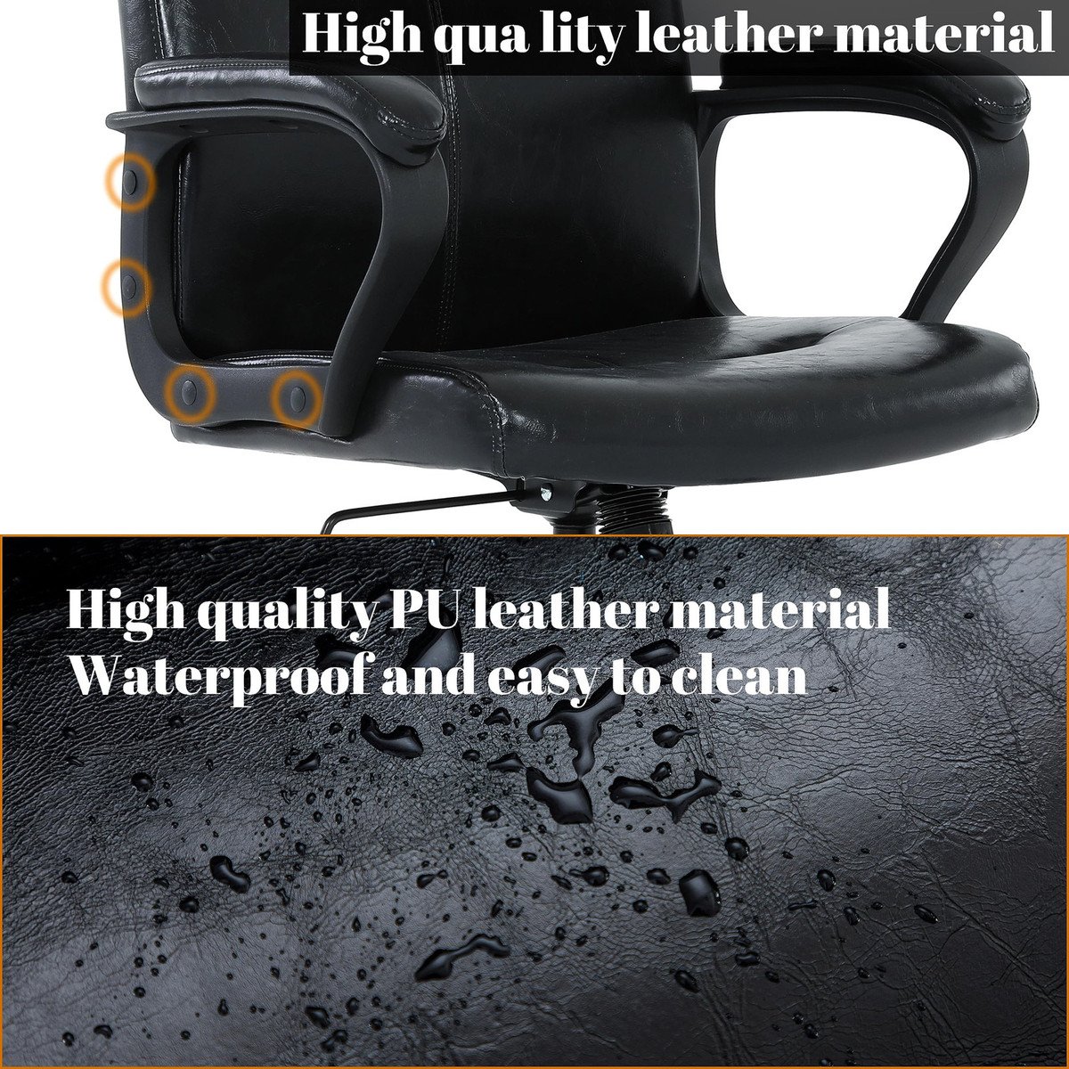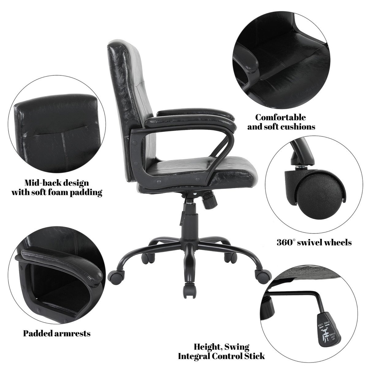 Excellent Material: This office chair is made of PU leather and has a metal frame that is waterproof, durable, and stable. High-quality wheels make your chair move smoothly and also protect your floor. The height of the seat is adjustable which meets your different needs.