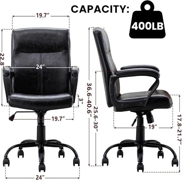 DYHOME Ergonomic Office Chair Black Leather Desk Chair