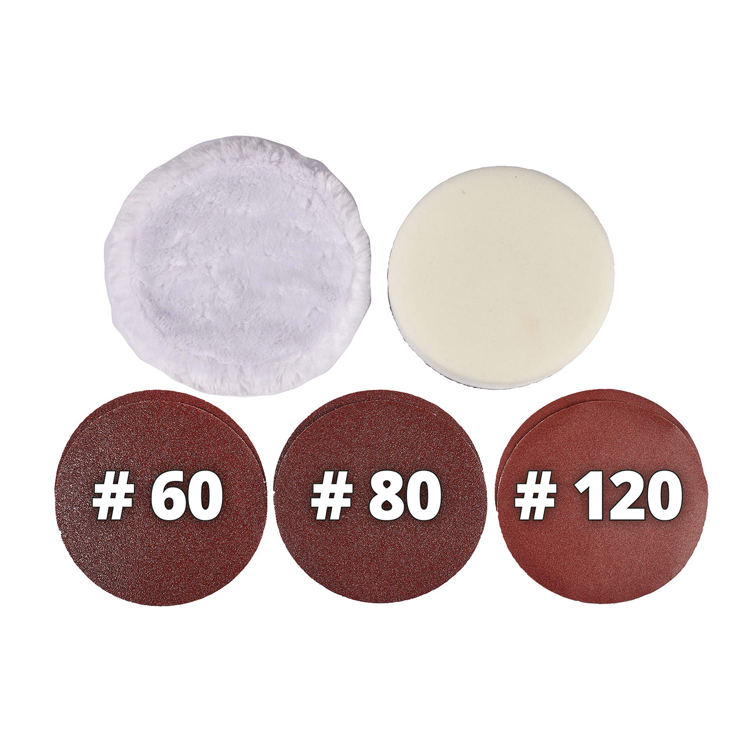 - INCLUDES: 7 inch polishing disk with hook and loop fastening system, 2 polishing bonnets and 3 sanding sheets
