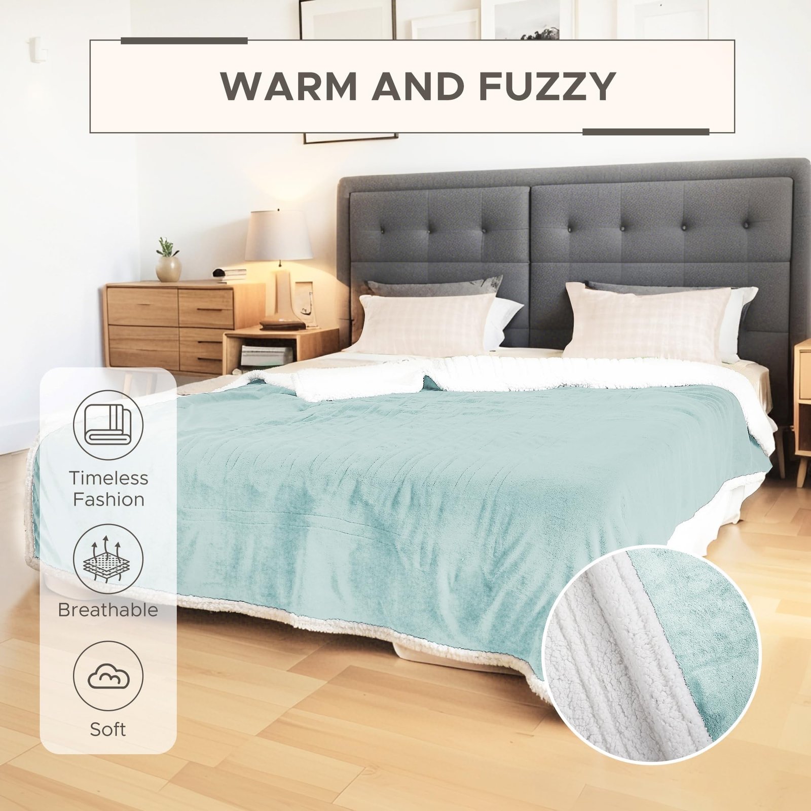 Dual-Sided Comfort for Every Need:Experience the best of both worlds with our innovative two-in-one design. The ultra-soft Microplush side offers a silky smooth feel for gentle warmth, while the Sherpa Fabric side provides extra coziness when you need more insulation. Simply flip to match your comfort preference or the season.