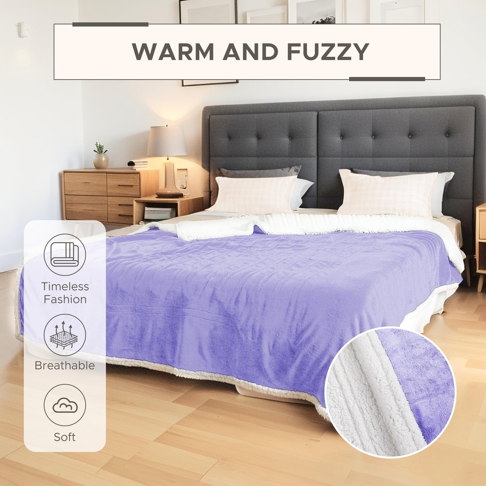 Premium Quality That Lasts:Crafted with high-grade materials that resist pilling and fading, this blanket maintains its luxurious feel through repeated use and washing. The elegant Light Purple color stays vibrant, while the machine-washable design makes maintenance effortless.
