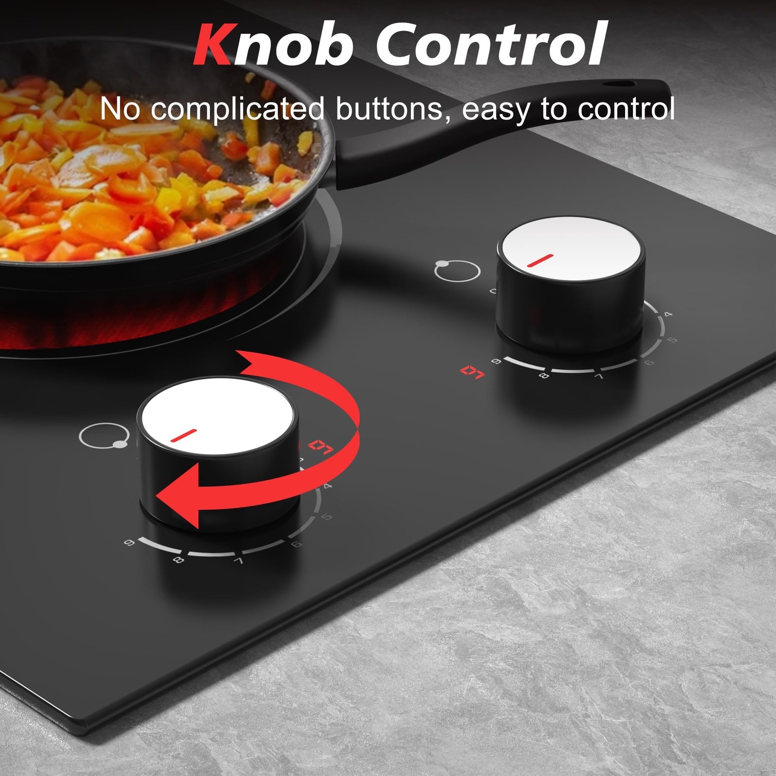 【Easy Knob Control】Two burner electric cooktop is easy knob control, which makes it feel good to operate. You don’t have to worry about the problem of insensitive touch and slow response. Two white knob is fashionable and adds a modern style to your kitchen. The control panel of the 2 burner electric stove top is clear and simple, without complicated buttons. Using knob controls to select the power is very suitable for the elderly.