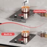 【Countertop & Built-in Design】This 2 burner electric stove has an drop in design, which is seamlessly connected to the countertop to save space and is easy to clean. It is very suitable for small kitchens. Of course, you can also use it on the countertop, just install 4 rubber feet. When using it on the countertop, you can move the 110v electric cooktop at your will.
