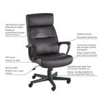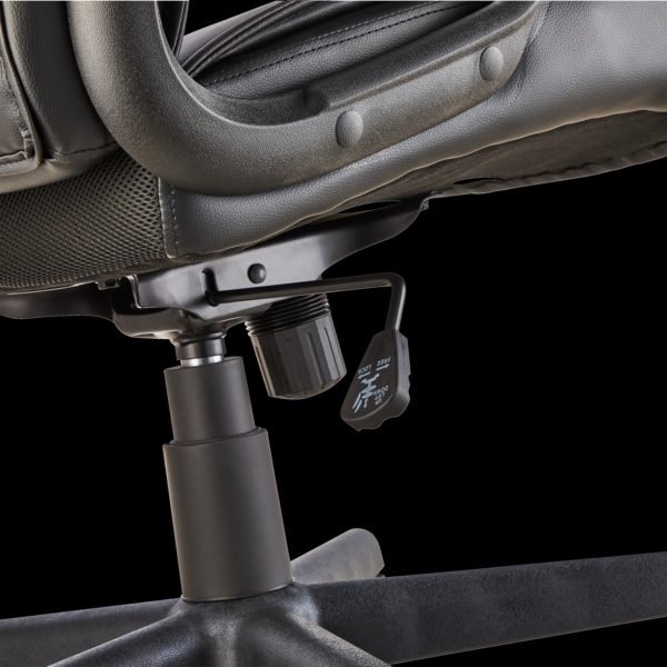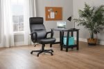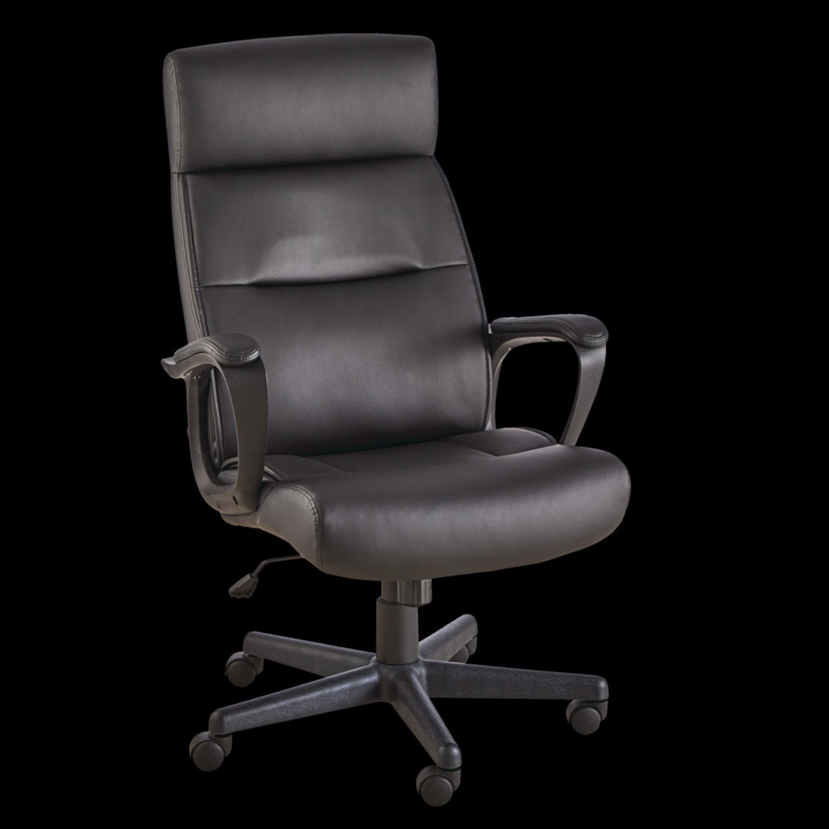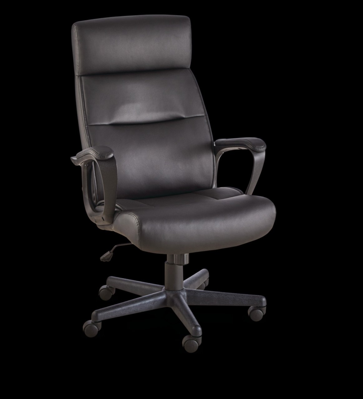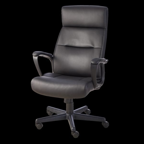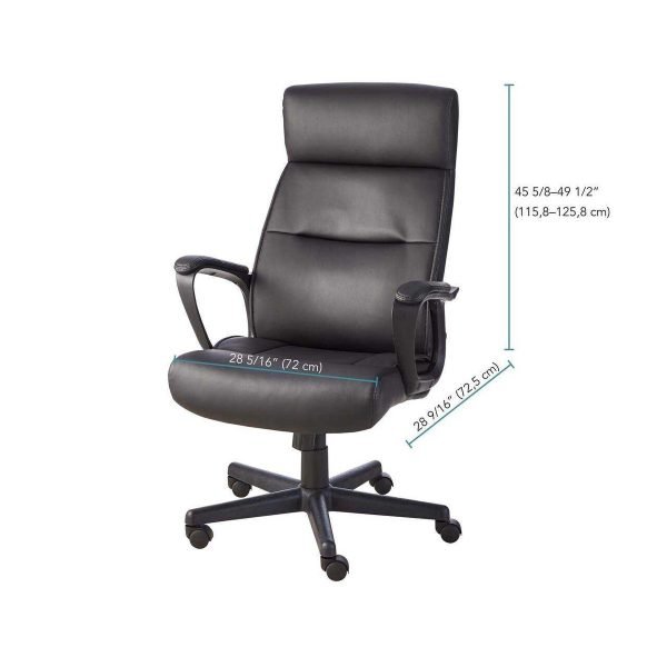 DescriptionThe For Living Executive PU Office Chair comes loaded with features to help make spending time sitting in your office or home office more enjoyable. A comfortable office chair can be the difference between a good workday and a bad workday, and this chair always has your back. The easy-to-clean black faux leather finish has a versatile aesthetic that easily complements virtually any modern or traditional decor, while the cushioned coil-spring seat delivers added comfort where you need it most. With padded loop armrests, a 360-degree swivel seat, and a convenient manual gas-lift lever on the side to adjust the height, this desk chair is built to keep you comfortable through long hours at your desk. The castors allow you to roll around your workspace with ease, while the high cushioned back lets you sit back and relax with uncompromising support. The adjustable height feature makes it easy to achieve custom comfort with a seat-height range of 19 5/16-inches to 23-inches tall to match the height of both the user and the desk. Take your home office to the next level with this stylish, modern office chair.