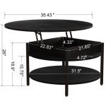 ?2-Tier Circle Coffee Table?The black round coffee table comes with 2 tier tabletop and hidden storage space. The top is 35.43??, which provides spacious space for living room supplies and keeps your daily essentials nearby. The bottom tabletop is 31.5″, gives you extra space to store magazines, snacks, knick-knacks, and makes your room tidy.