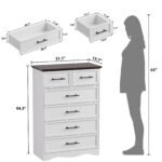 【Durable & Stable】This white dresser is made of engineered wood, with widened metal matte handles embrace the difference as you feel the weight and sturdiness in your hands, experiencing the unmistakable mark of true high-end hardware. The thickened tabletop ensure durability and stability, making it safe and reliable for everyday use.