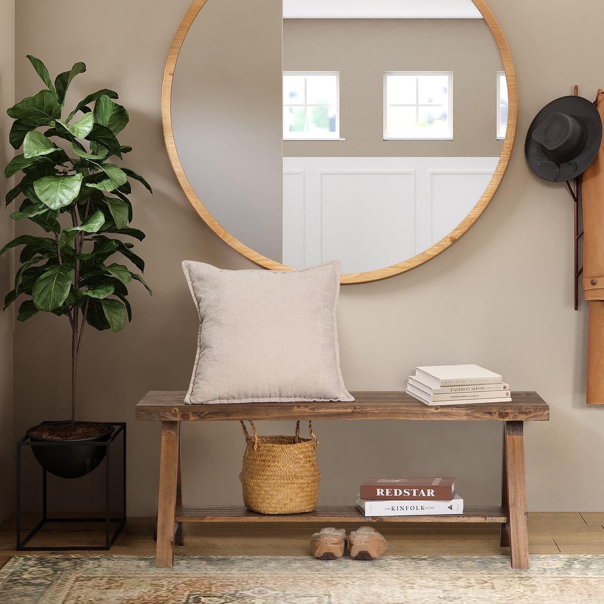 Farmhouse Wood Bench, Long Rustic Indoor Storage Bench