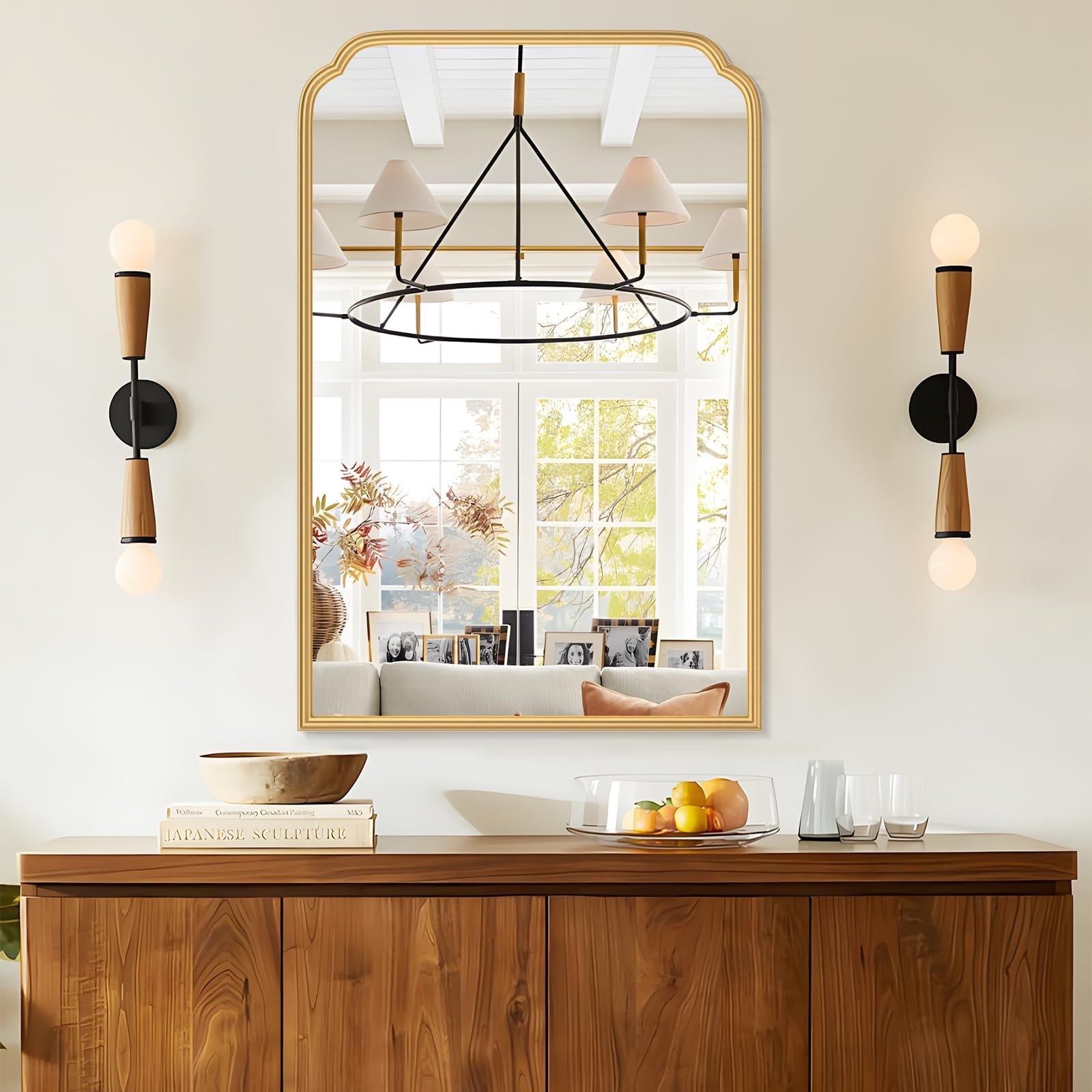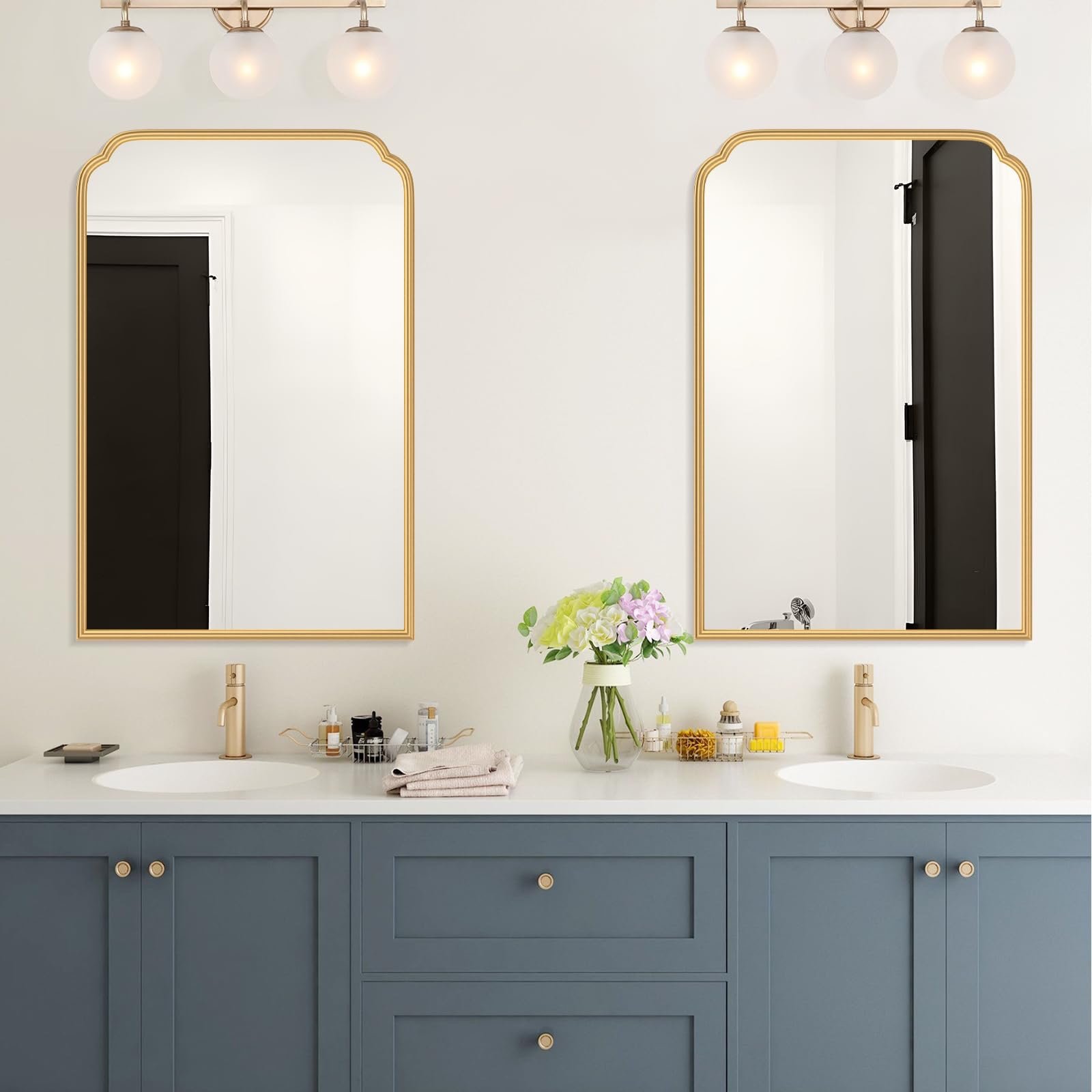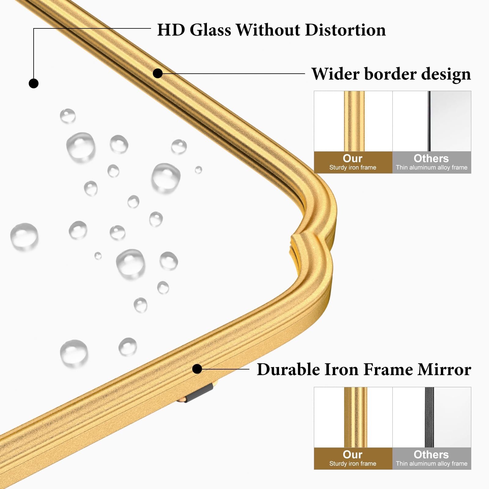 A Unique Elegant Mirror: The gold bathroom mirror, the overall design and elegance of the curves in the frame and it adds a touch of elegance as opposed to a boring straight square mirror. A very versatile mirror that will enhance the level of decoration anywhere in the home. The rounded corner mirror is classic and will never go out of style.