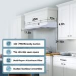 EASY INSTALLATION AND GREAT LOOK:Easy to install with the instruction manual and the installation guide video. Stylish and simple appearance, kitchen exhaust fan suitable for both modern kitchen and old style. Product Dimensions: 29.9 in. (W) x 17.5 in. (D) x 4.7 in. (H)