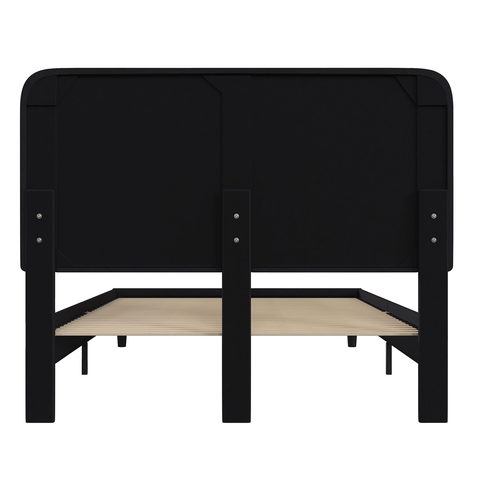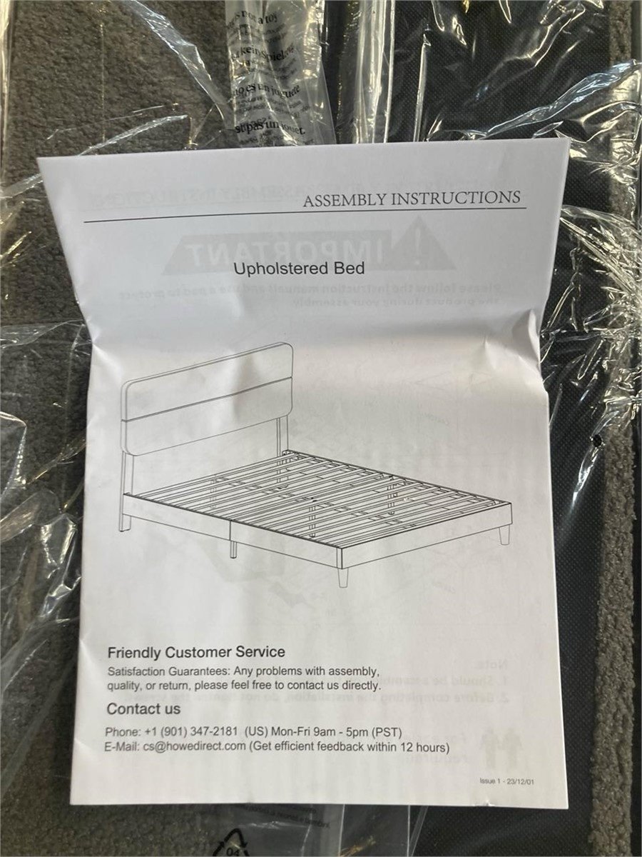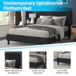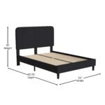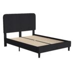 SIMPLE STYLE: Modern platform bed with gently curved headboard and low profile side rails and footboard featuring soft but durable fabric upholstery