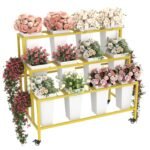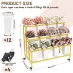 【3-Tier Flower Cart with 12 Display Buckets】: Showcase your floral creations with this spacious flower cart stand featuring 3 levels and 12 removable buckets—ideal for fresh flowers, faux arrangements, or greenery.