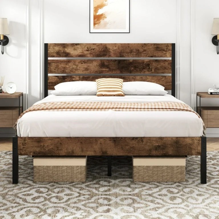 Rustic Design: Unique and stylish headboard and footboard blend vintage and industrial elements, adding a charming rustic touch to your bedroom decor.