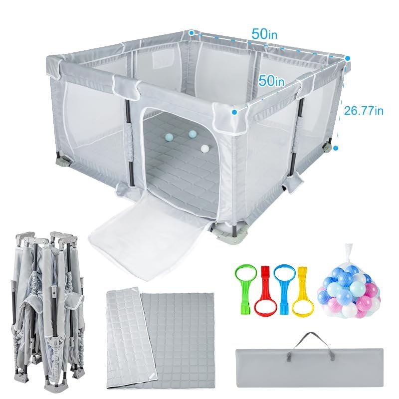 Conveniently baby playpen foldable: This foldable baby toy pen for infants and toddlers can be quickly assembled and disassembled by one person without the need for tools, making it easy to store and carry when not in use