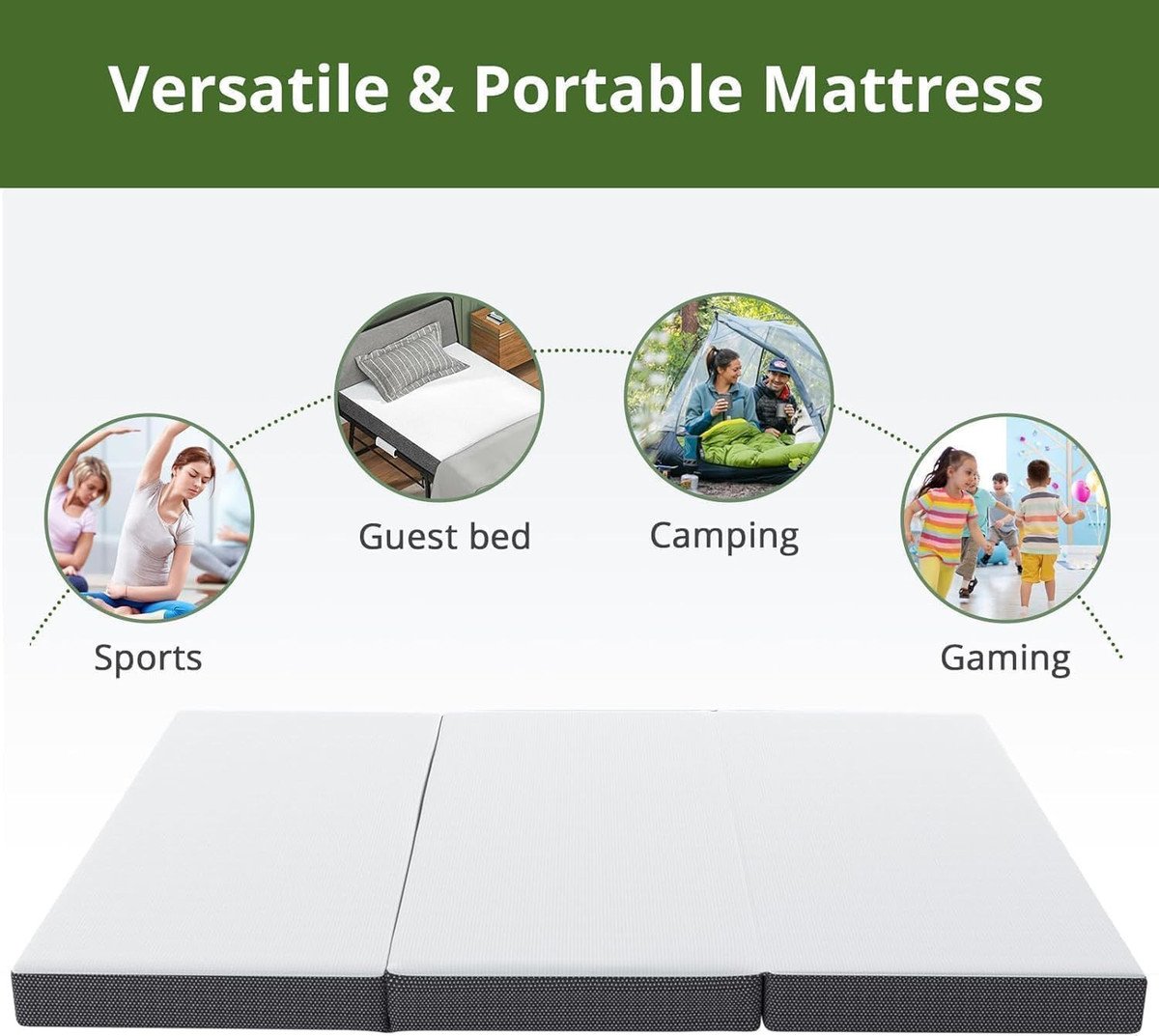 [Certi-PUR-US Certificated Foam] The foldable mattress is padded with 4 inch of high-density support foam to provide your body with perfect head-to-toe support for medium firmness. Non-toxic and odorless materials make every sleep comfortable and worry-free.