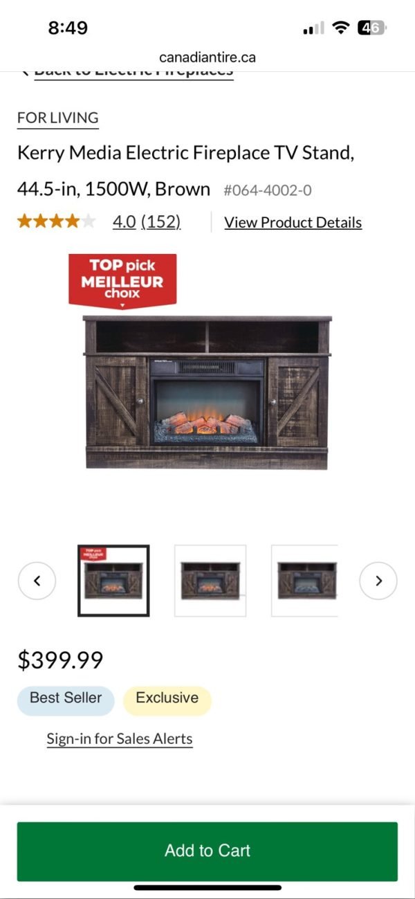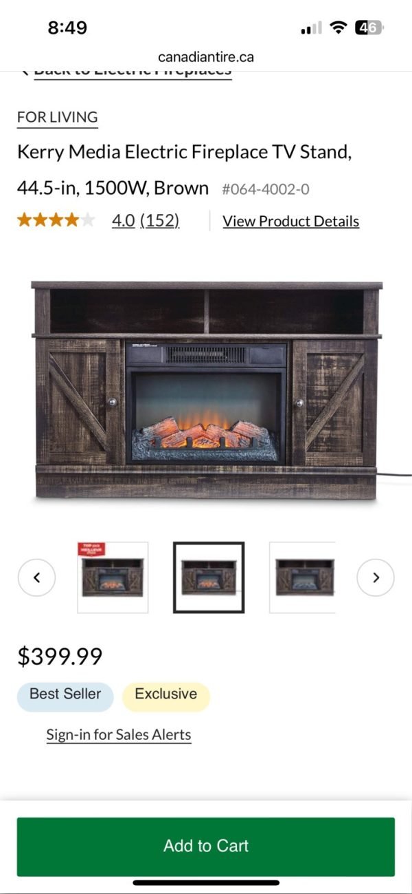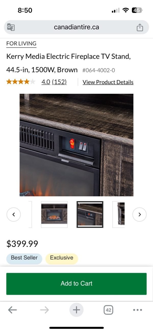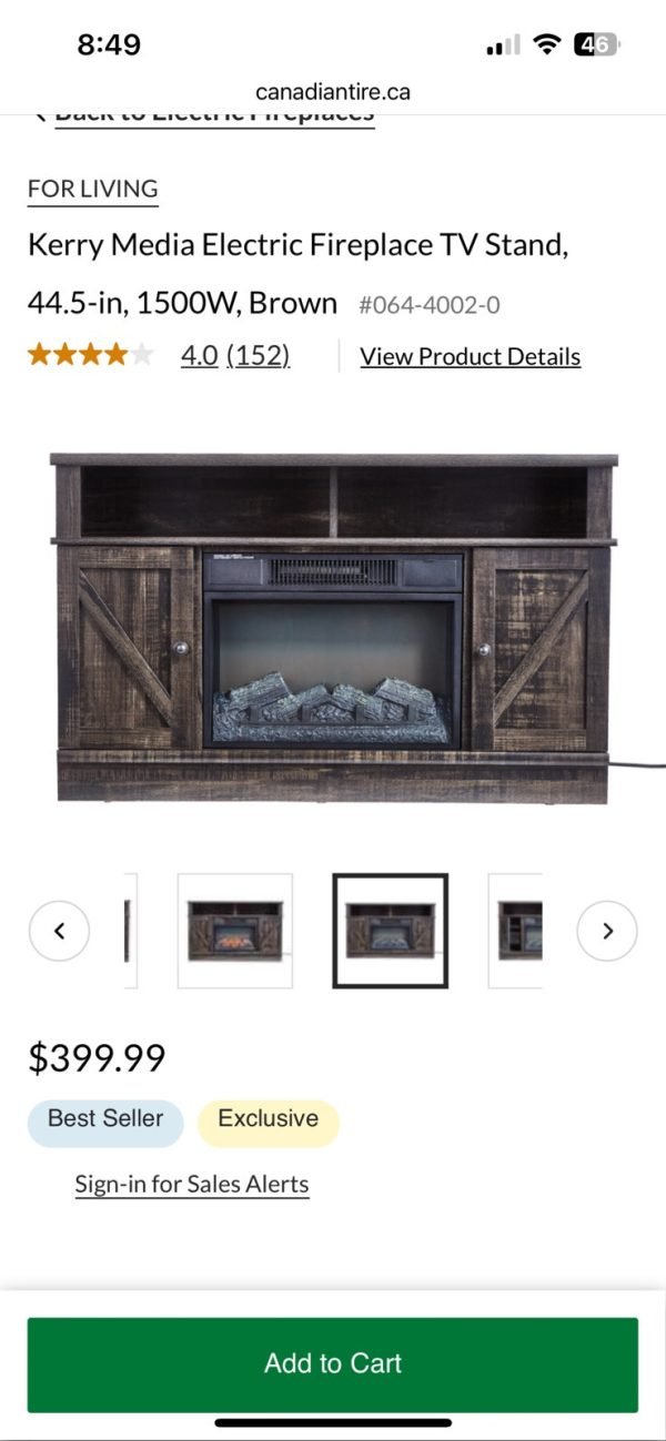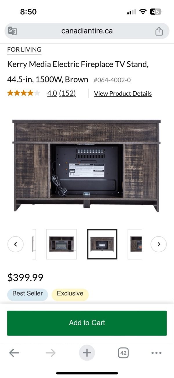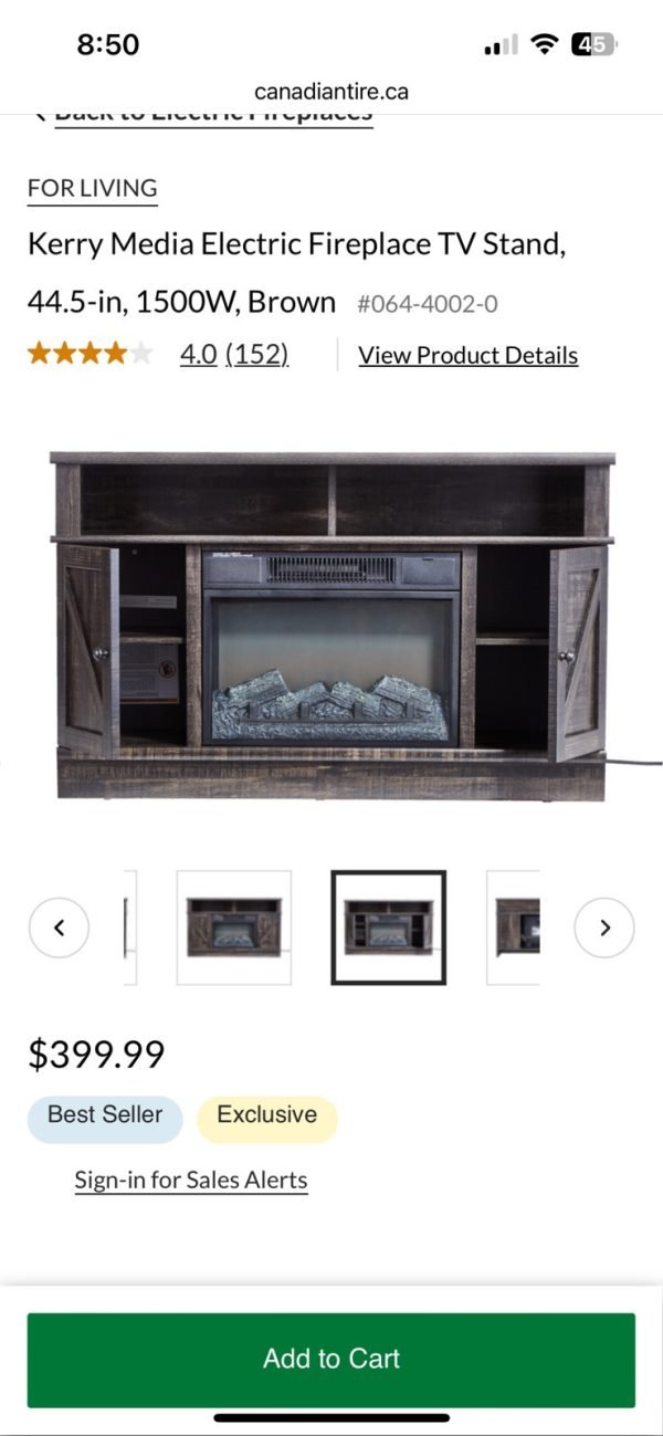 FOR LIVINGKerry Media Electric Fireplace TV Stand, 44.5″
