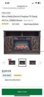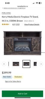 DescriptionThe CANVAS Kerry 44.5″ Media Fireplace and Storage Shelf features an electric fireplace designed with a textured, smoked, rough-sawn oak finish, providing an attractive aesthetic sure to complement your interior d?cor. The fireplace can accommodate a 50-inch television on the top shelf, and the unit includes two storage cabinets with barn-like wooden doors on each side of the fireplace. This electric fireplace provides 4500 BTUs of heat output, effectively heating spaces up to 400 square feet.
