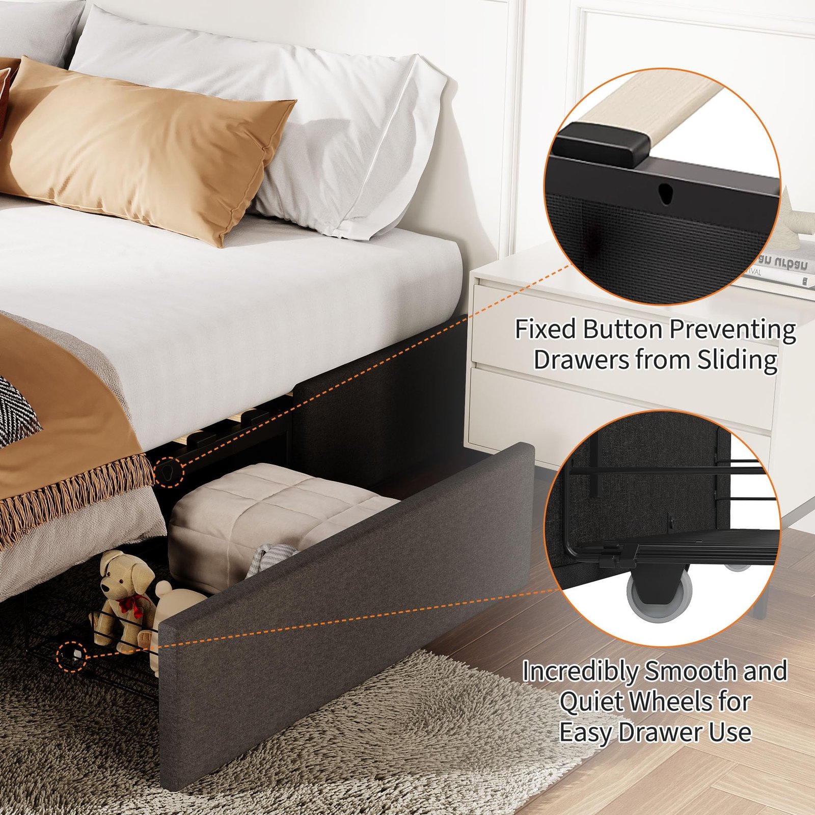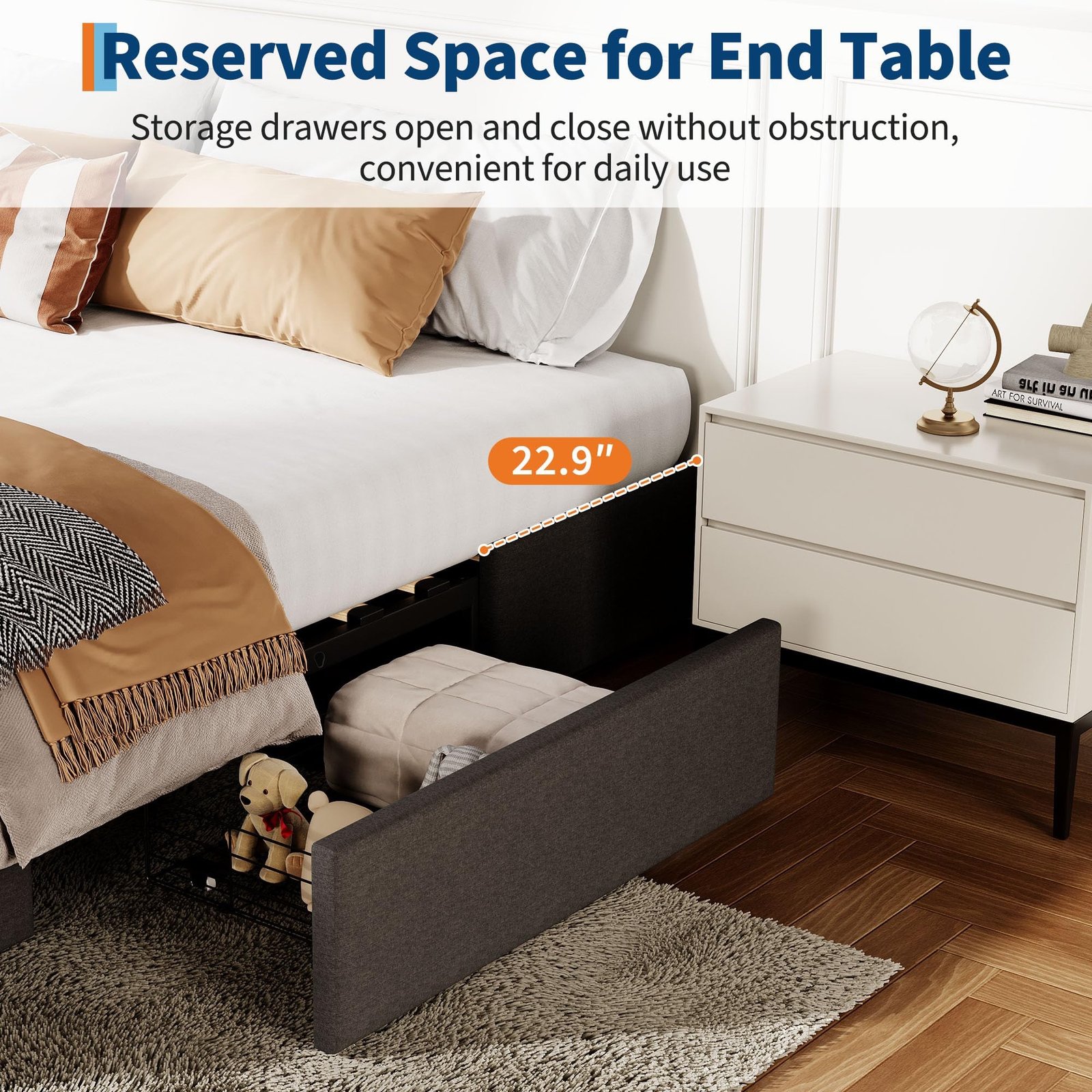 Ample Storage Space: Designed with 1 side drawer on each side and 1 large drawer at the bed end, offering ample storage space for your accessories
