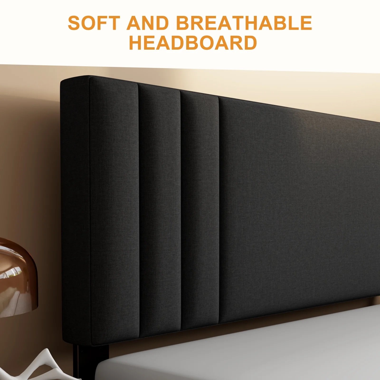 COMFORT EXPERIENCE: Our Queen Size Bed Frame with Upholstered Headboard features a headboard made of premium linen fabric and wrapped with 1.2 inches of high resilience memory foam. The bed frame’s upholstered side rails provide supportive comfort, and the versatile, minimalist style is suitable for all styles of bedrooms