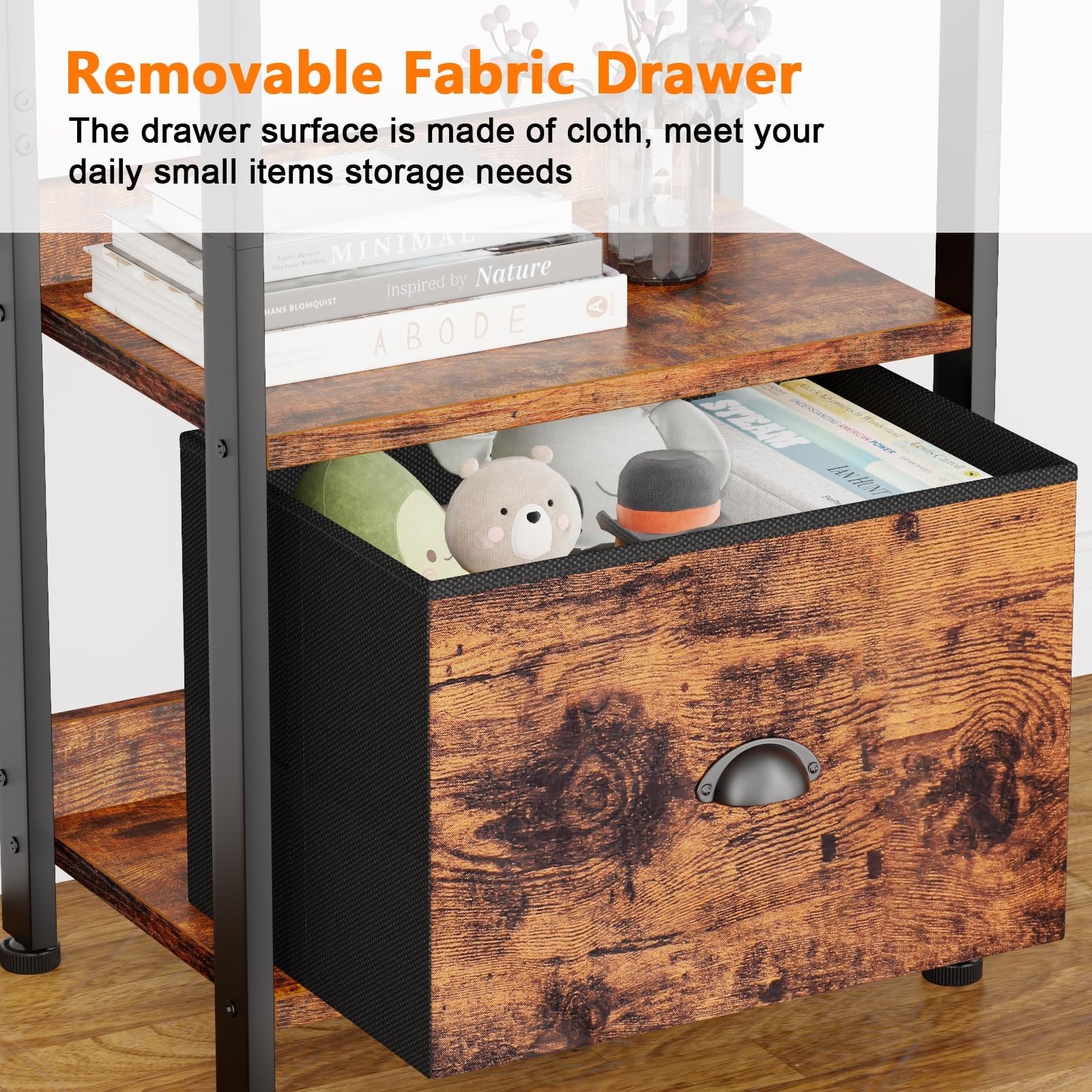 [Shelf with Removable Fabric Drawer]: This skinny bookshelf with a drawer, and the surface is made of cloth, which is light and soft. This design adds security, so it is suitable for use in the nursery matches 2 and 4 tier rustic bookshelf . Drawer size is 13.7″W x 10.2″ D x 10.2″H, same as a small storage box, can be placed anywhere, closet for storage as you like!