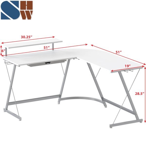 Gaming L-Shaped Computer Corner Bureau Desk with Monitor St