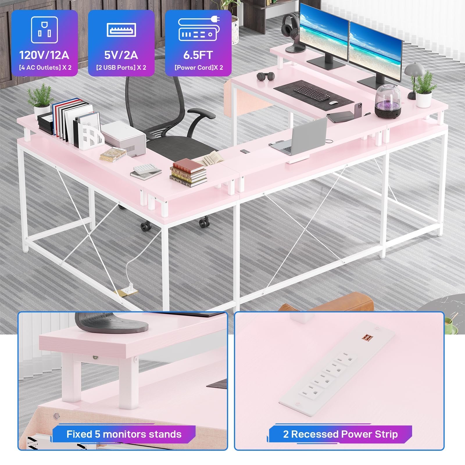 【Convertible U Shaped Office Desk】Reversible 79 inch U shaped desk or 126 inch Long desk two person desk.The computer has three tables with plenty of surface area. You can use one side as a work area, the other as a play area, and the other as a writing area. The ideal studio desk to meet your different needs and create a great home office space.