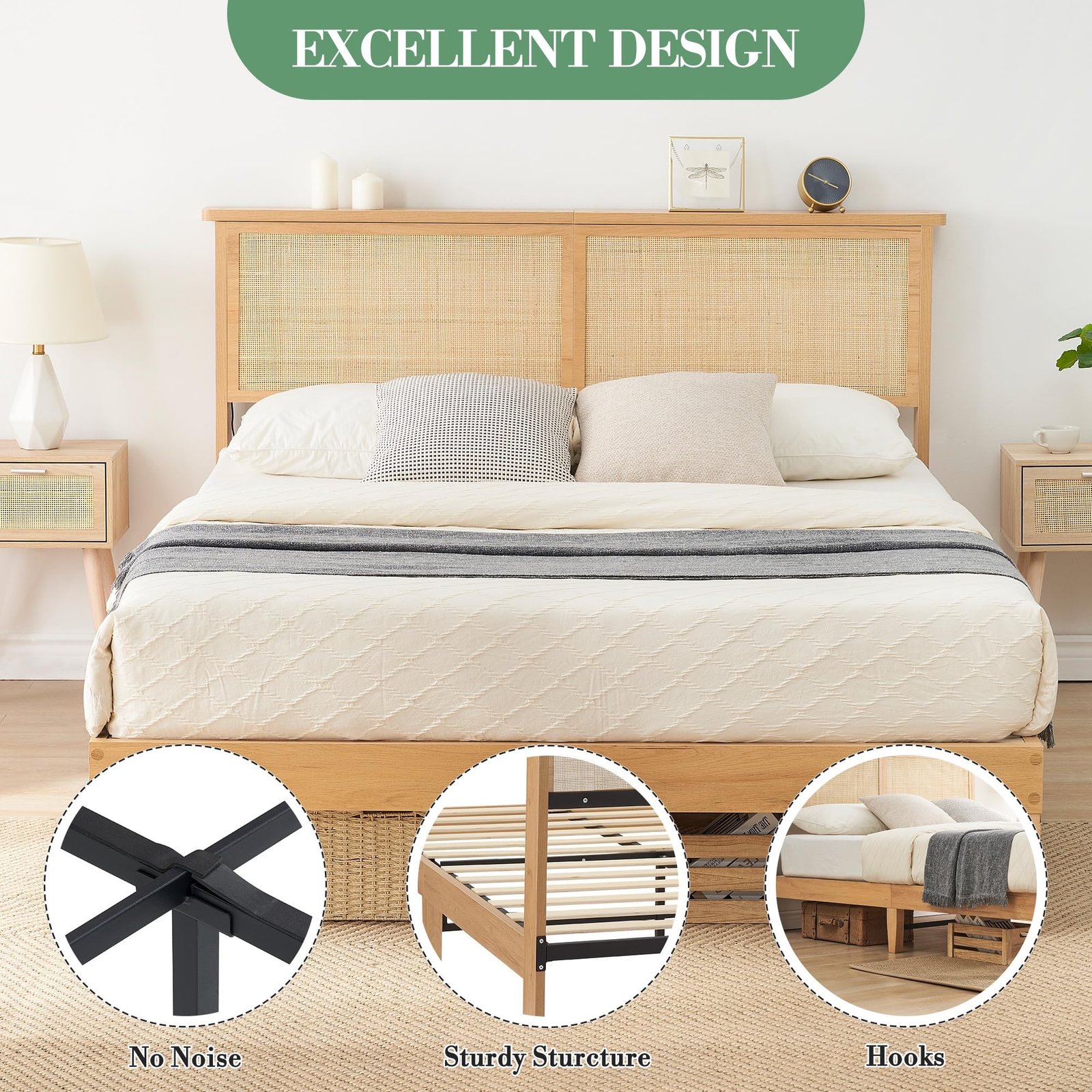 【Simple Assembly & Reliable Quality】Shipped with all hardware and clear instructions in one box, this rattan bed frame is easy to assemble at home. Reinforced boards provide long-lasting strength for families, ensuring years of comfort and style.