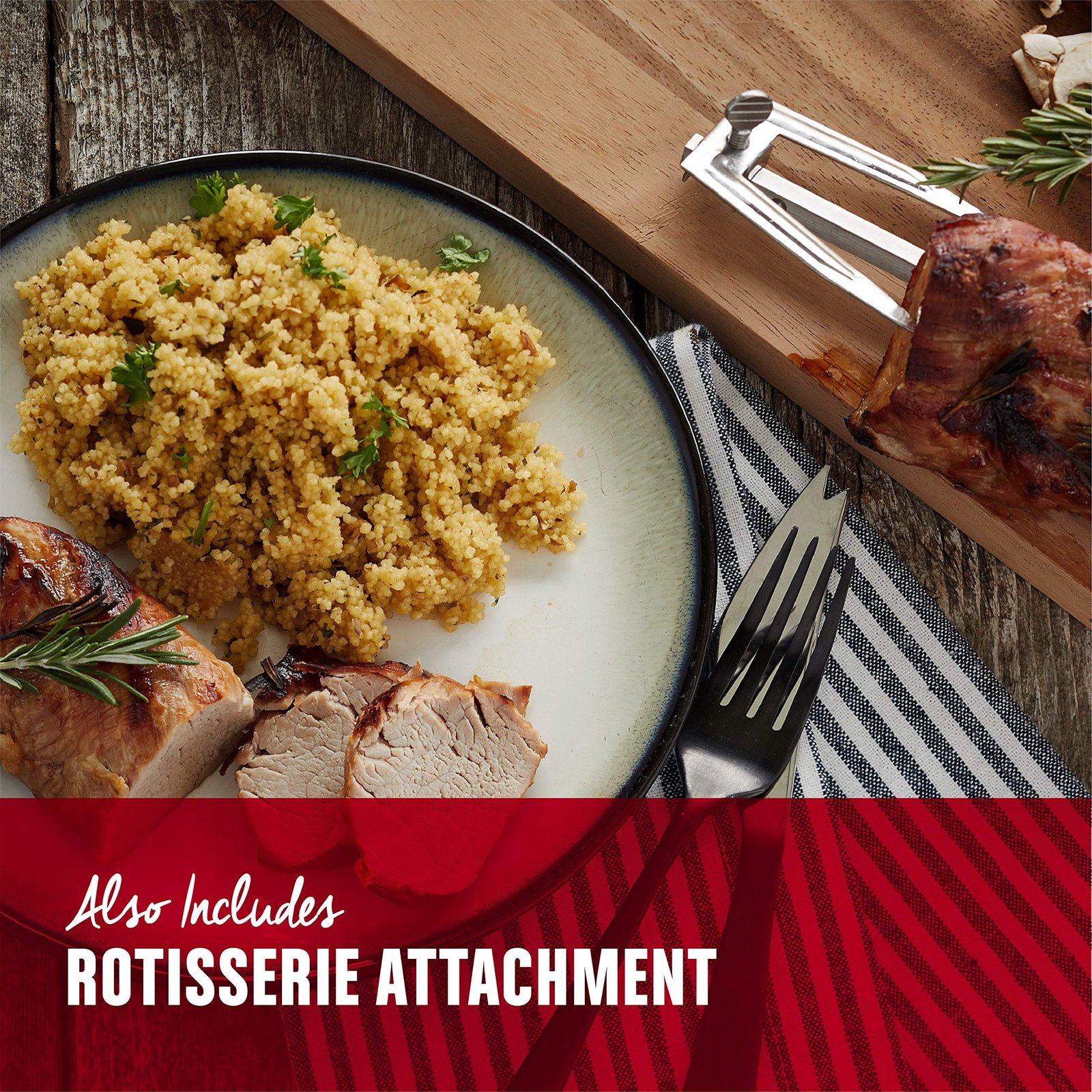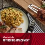 - Rotisserie Attachment Included – The rotisserie attachment and cooking function deliver mouthwatering results on whole chickens, large cuts of meat, and more.