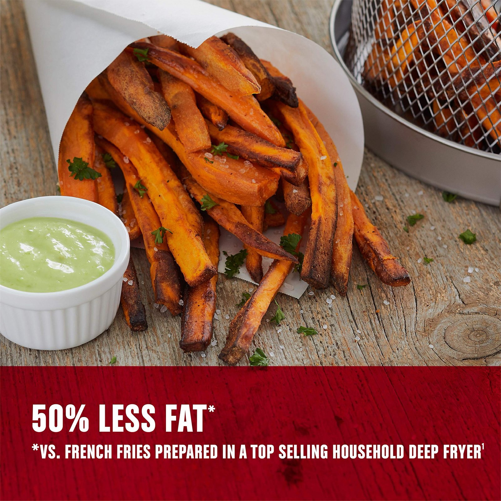 - Up to 50% Less Fat – Air frying helps cut the fat! The innovative cooking method uses hot air to cook and crisp your fried favorites without all the fat.