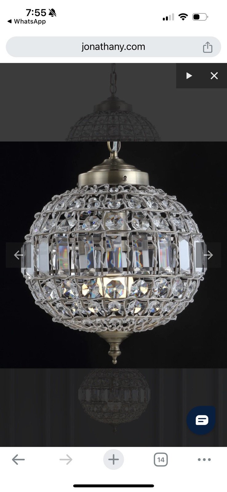 Classic elegance exudes from this finely designed and crafted crystal pendant. With a classic globe shape and antique brass fittings, the addition of faceted crystals into all the open spaces creates a glamorous effect. With one bulb concealed within its sphere and a fully adjustable chain length, this fixture could be equally at home in spaces big and small.Show more