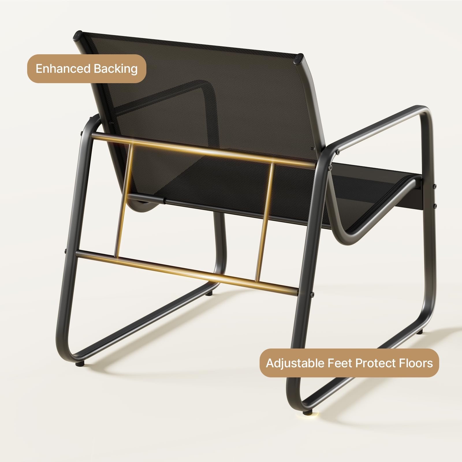 🧩[𝐑𝐮𝐬𝐭 𝐚𝐧𝐝 𝐈𝐦𝐩𝐚𝐜𝐭 𝐑𝐞𝐬𝐢𝐬𝐭𝐚𝐧𝐜𝐞] Our patio furniture set are designed to resist rust and impacts. The legs of both the table and chairs are made of interconnected steel, preventing rainwater from seeping in. The surfaces are coated with rust-resistant layers to withstand erosion from rain. Additionally, the patio set features curved armrests and table edges to reduce the risk of accidents.