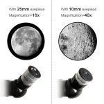 Powerful Magnification: Comes with two replaceable eyepieces and a 3x Barlow lens that can triple the magnifying power of each eyepiece. This allows for a range of magnification options, making it easier to observe objects at different distances.