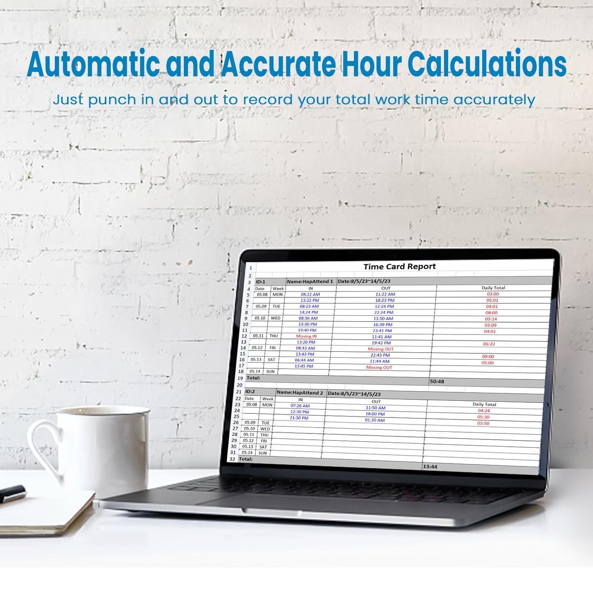 Perfect for Small Business: The time clock is widely used in workplaces, including offices, factories, hotels, schools, restaurants, etc., and is ideal for small and mid-sized businesses with a maximum of 500 employees.