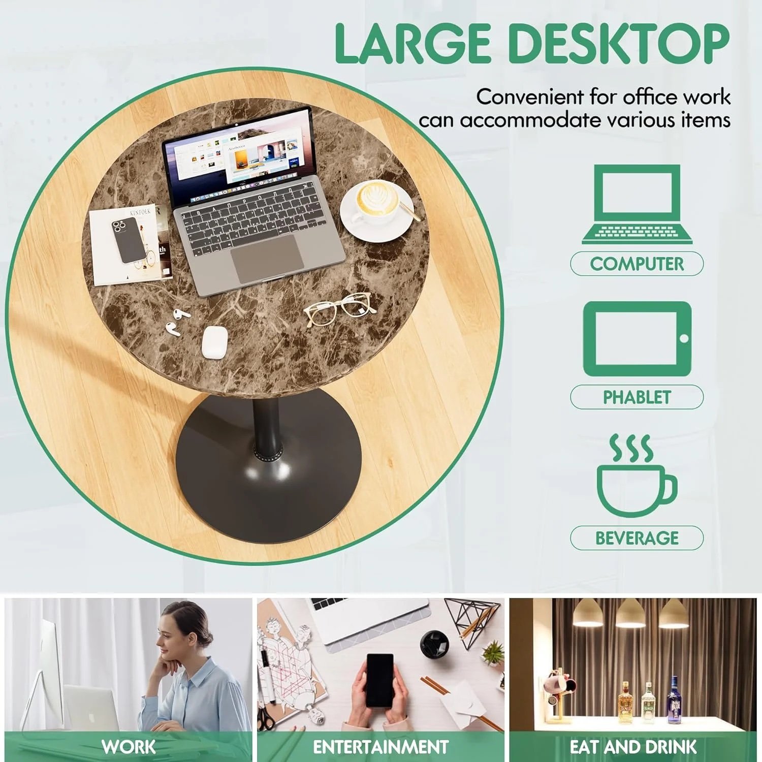 Easy Access and Convenience: This bar table provides easy access to coffee, drinks, and snacks, making it ideal for entertaining guests. The spacious top with a big circle design offers ample space and convenience for your items.