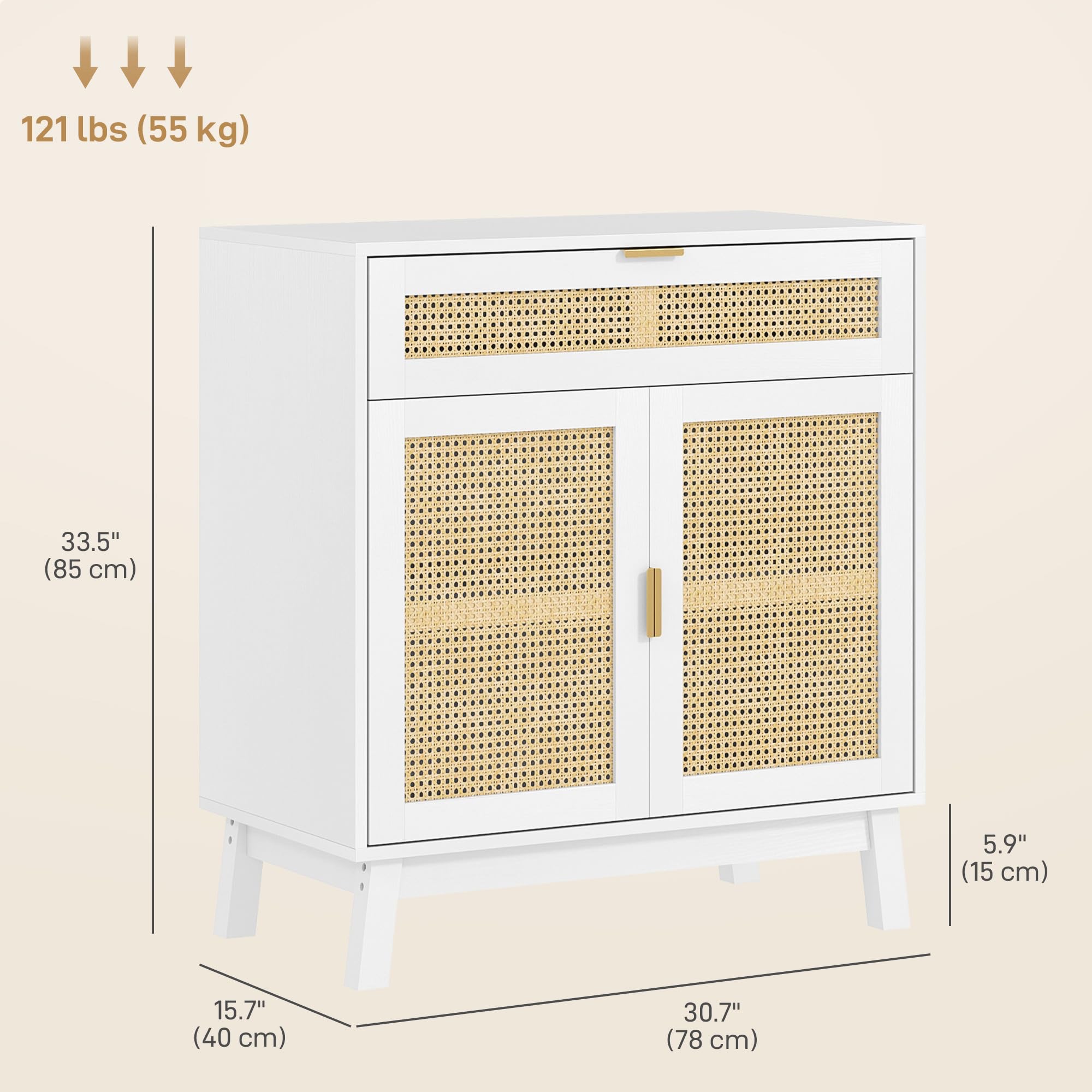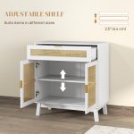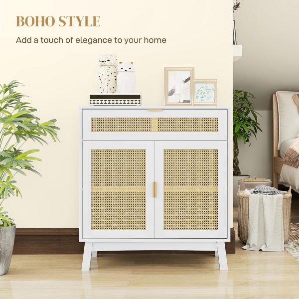Elegant Boho Style: This accent cabinet features boho style rattan doors and chic aluminum golden handles, adding a touch of elegance to your home