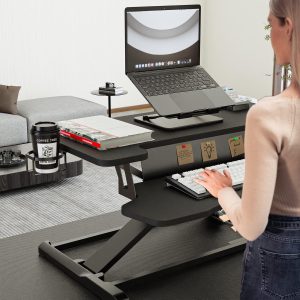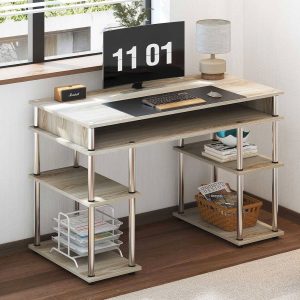 Computer Table Dimension: Overall Dimension: 41.7″ W x 18.9″ D x 50.4″ H (106 x 48 x 128 cm); Weight Capacity: 44lbs/20kg (desk), 11lbs/5kg (shelf).