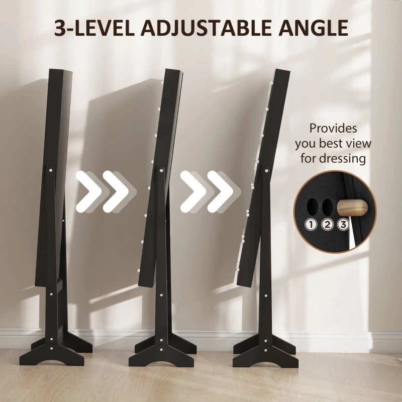 Adjustable Angle: Easily adjust the mirror to your preferred viewing angle using the wooden dowels at the back. With three tilt positions available, you can find the right angle for a clearer and more comfortable view.
