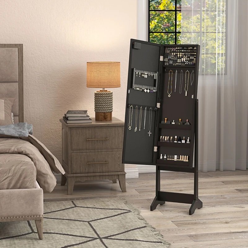 Solid Construction: Made from quality MDF, this mirror jewelry cabinet stands firmly whether placed in bedroom, dressing room, or living room, providing stylish and reliable storage wherever you need it.