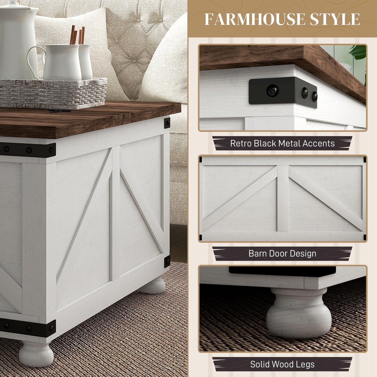 Spacious Storage Area: Keep your living space tidy with this farmhouse coffee table, offering a large hidden compartment under the tabletop for books, magazines, or tea sets.