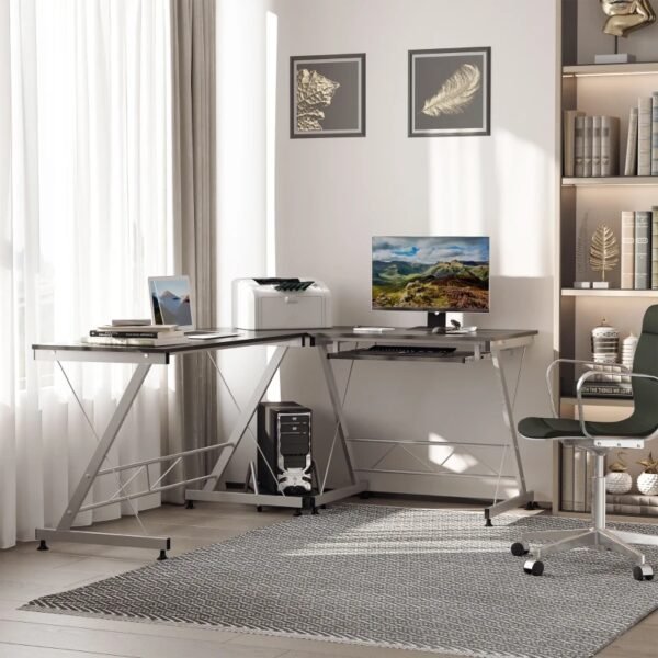 Compact L-Shaped Corner Design: The space-saving, wrap-around style of this craft desk offers plenty of surface space for home and office work-related or gaming activities.