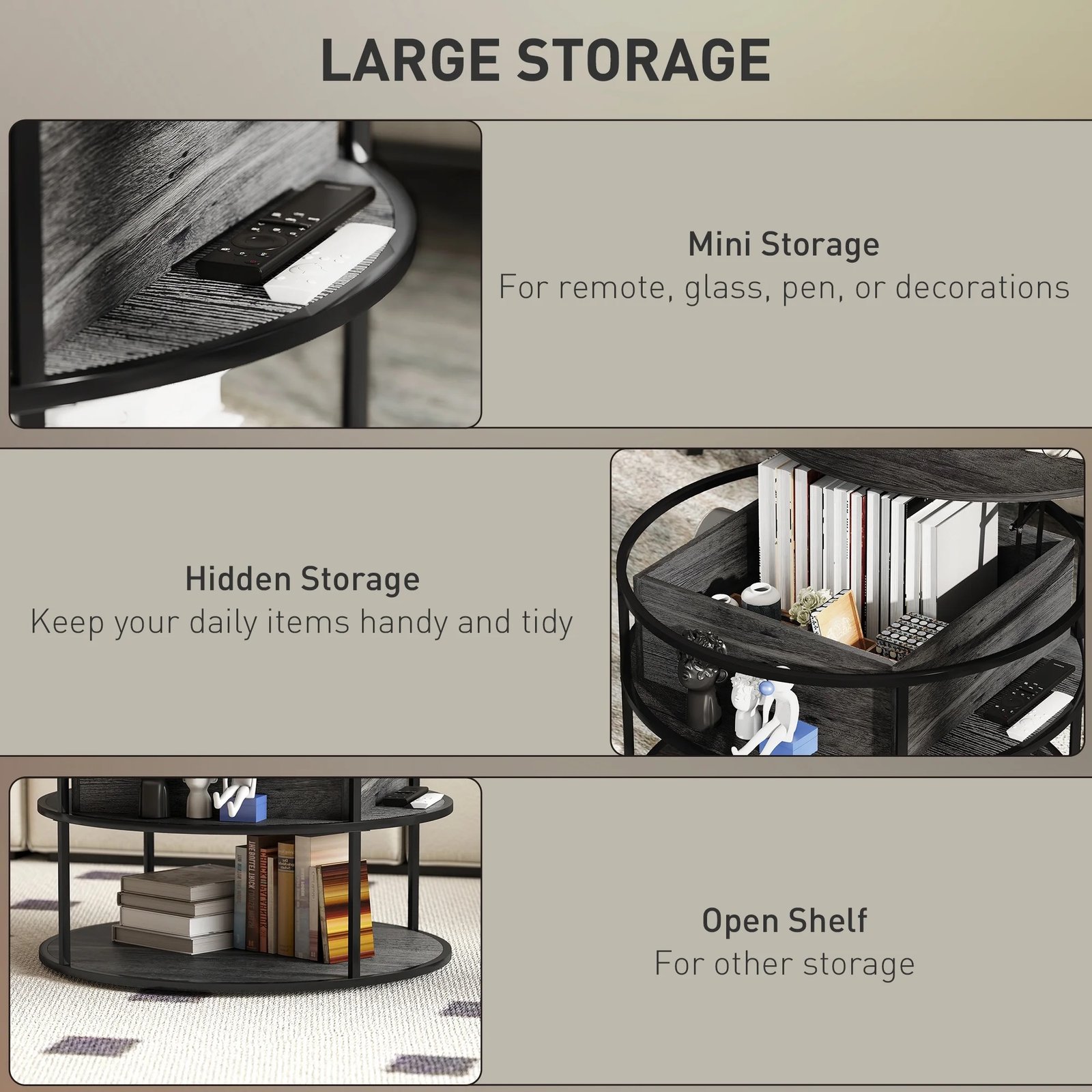 Bottom Compartment Size: Dia. 29.1″ x 9.8″ H (Dia. 74 x 25 cm)