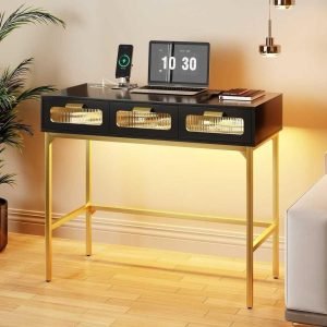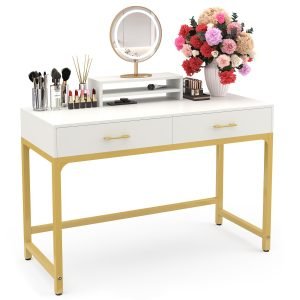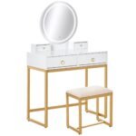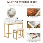 Multiple Storage Space: Featuring a lot of storage space, this vanity makeup table set has 4 drawers, big right drawer has ring slots to hold your rings. Two different-sized drawers – large drawer for makeup tools such as curling irons, combs, etc. Small drawer perfect for your skin care products, cosmetics or jewelry