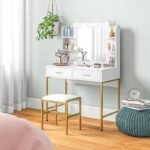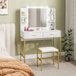 Modern Design: Featuring a minimalist style with clean lines, this vanity desk with mirror adds a touch of elegance and simplicity to your bedroom or dressing area.