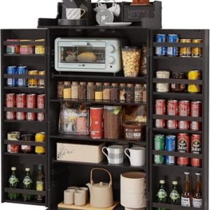- • Weight Capacity: 154 lbs (70 kg) (whole), 88 lbs (40 kg) (microwave rack), 22 lbs (10 kg) (top & interior shelf)