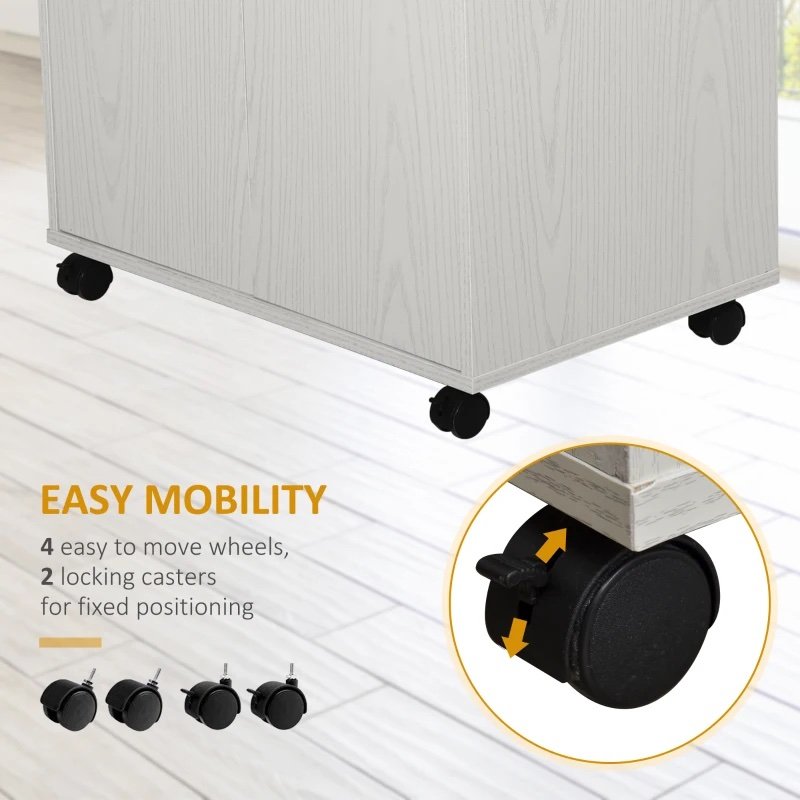 HOMCOM Microwave Cart on Wheels Utility Trolley Storage Sideboard Bookcase