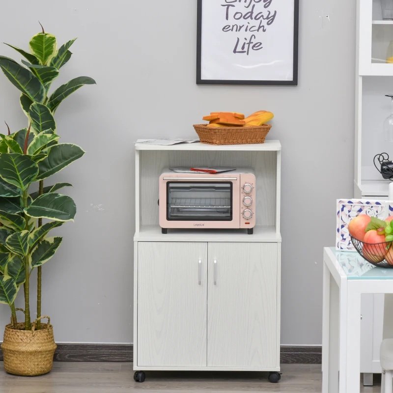 Easy Mobility: 4 smooth rolling casters with 2 locking brakes make this microwave cart super simple to move and relocate throughout the kitchen or house