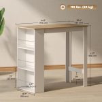 Bar Table with Storage Information: Overall dimension: 44.1″ W x 22.4″ D x 41.7″ H (112 x 57 x 106 cm). Weight capacity: 110 lbs/50 kg (whole), 11 lbs/5 kg (shelf)